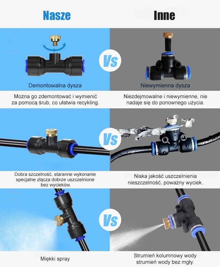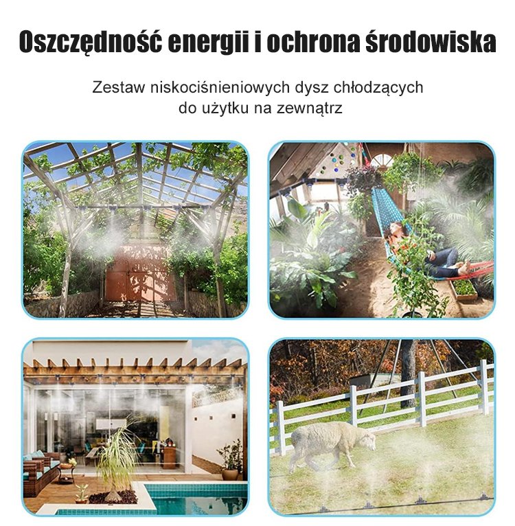 Zestaw niskociśnieniowych dysz chłodzących do użytku na zewnątrz